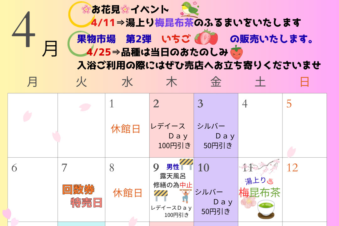 4月のイベントカレンダー