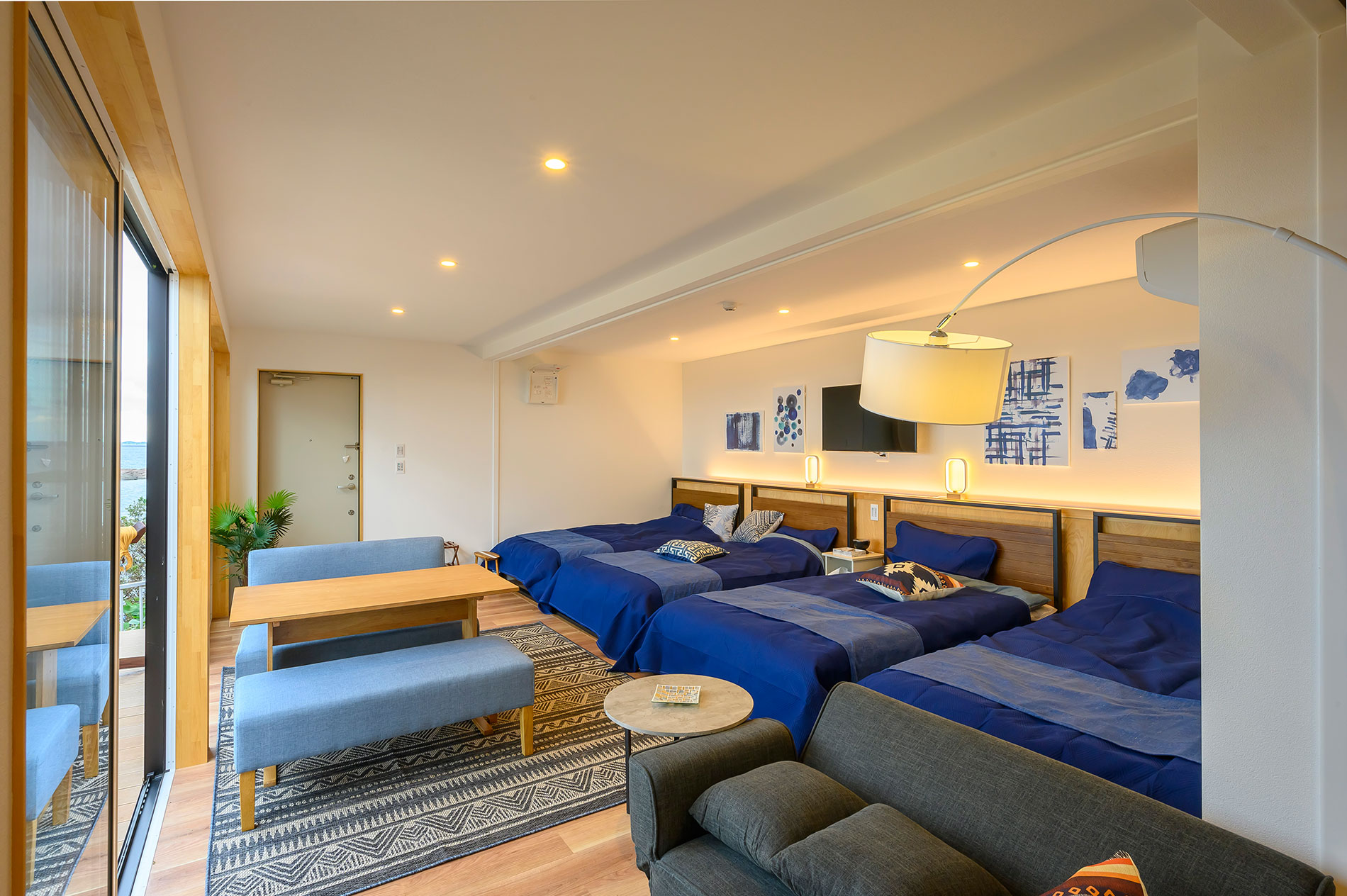 今回は、ブルーと黒を基調としたインテリアと灯台まで見晴らす景色が魅力の【蒼―SOU】へこちらをご利用の際は、お車やバイクで海のHANAREの施設入口まで入場可能です。
